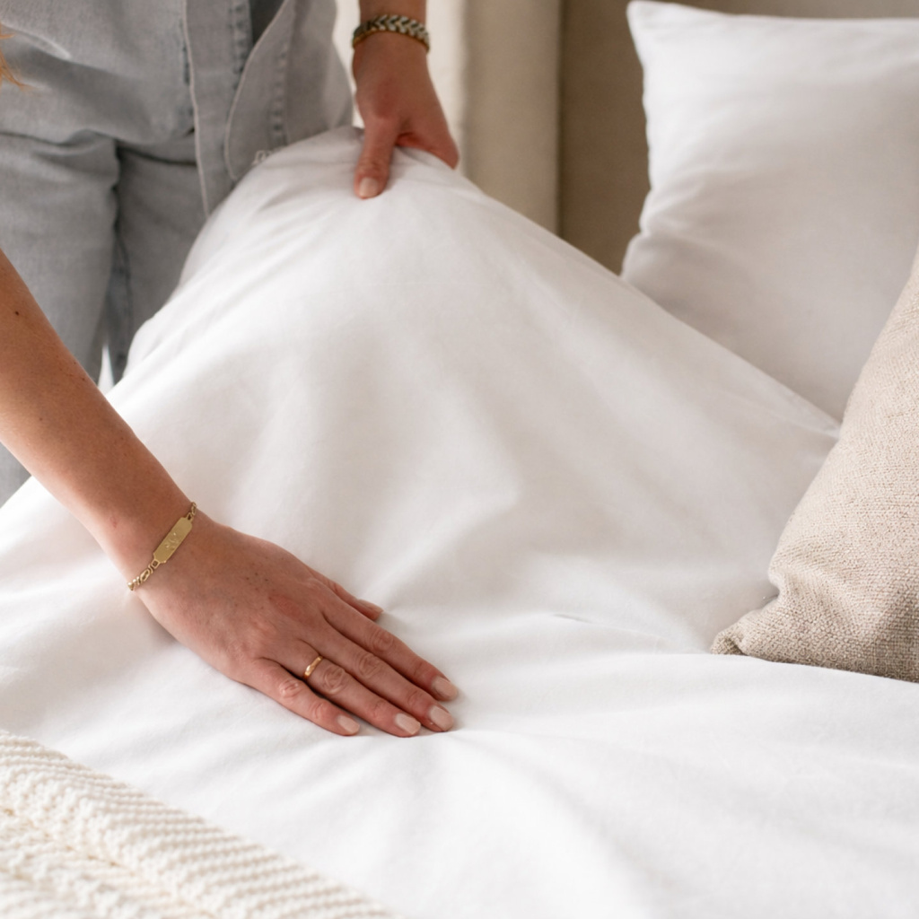 Žádná lesklá a klouzavá látka, ale pocit, jako byste se probudili v luxusním hotelu. Jen tedy bez snídaně.